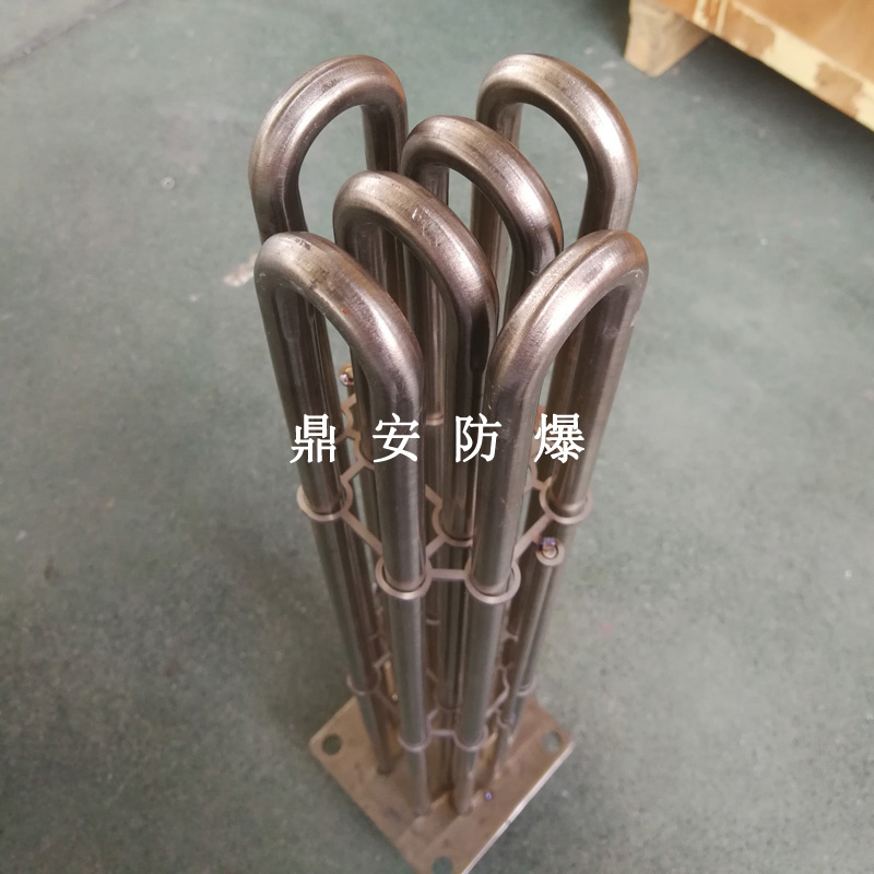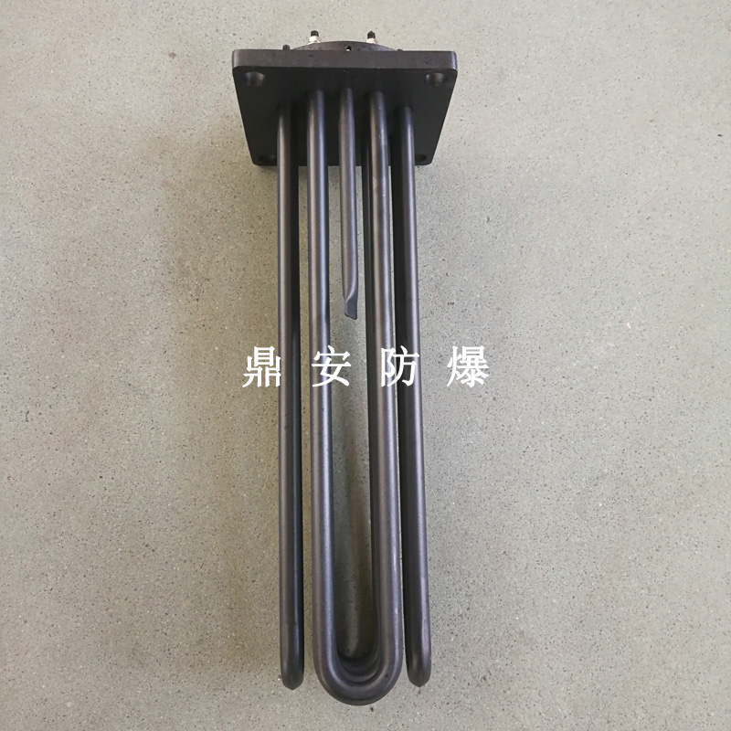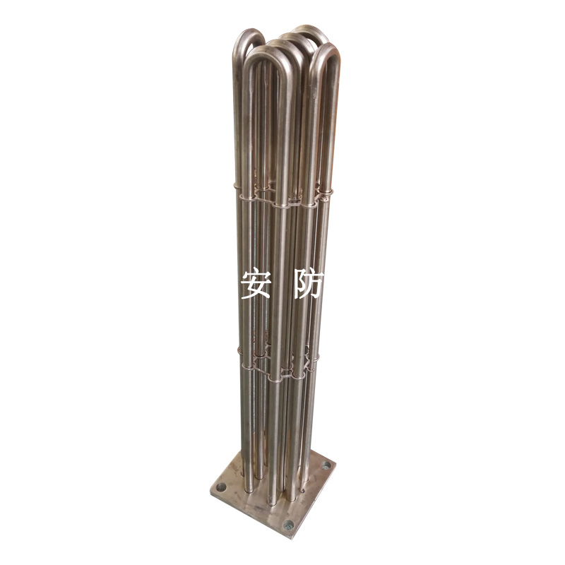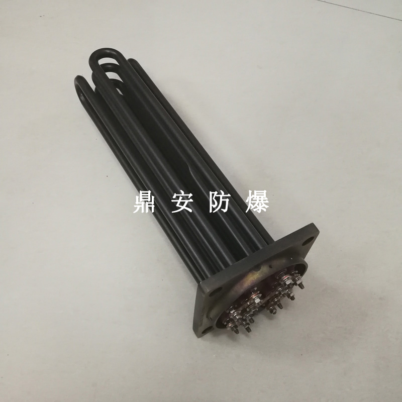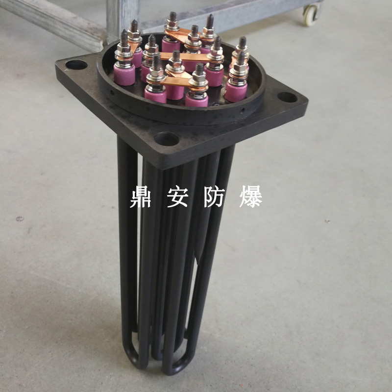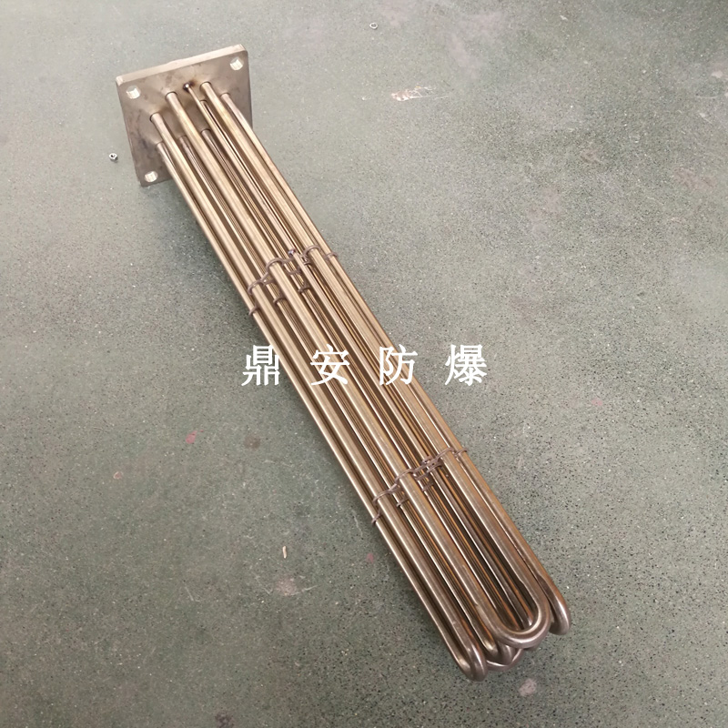 法蘭電熱管(也稱(chēng)插入式電加熱器):是采用U型管狀電熱元件,多支U型電熱管焊接在法蘭上集中加熱,依據(jù)加熱不同介質(zhì)設(shè)計(jì)規(guī)范,按照功率配置要求裝配在法蘭蓋上,插入需加熱物料中,發(fā)熱元件工作時(shí)所發(fā)出的大量熱量傳導(dǎo)給被加熱介質(zhì)使介質(zhì)溫度升高,達(dá)到所需的工藝要求,主要用于敞開(kāi)式、封閉式的溶液箱和循環(huán)系統(tǒng)中加熱用。