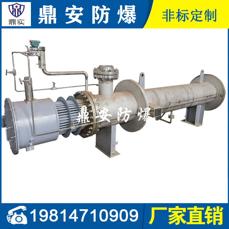 3、應用范圍廣,適應性強; 軸封電加熱器可適用于防爆或普通場合,它的防爆等級可達C級,它的耐壓可達25Mpa。并可根據(jù)用戶需要筒體采用立式或臥式不同的安裝方式。